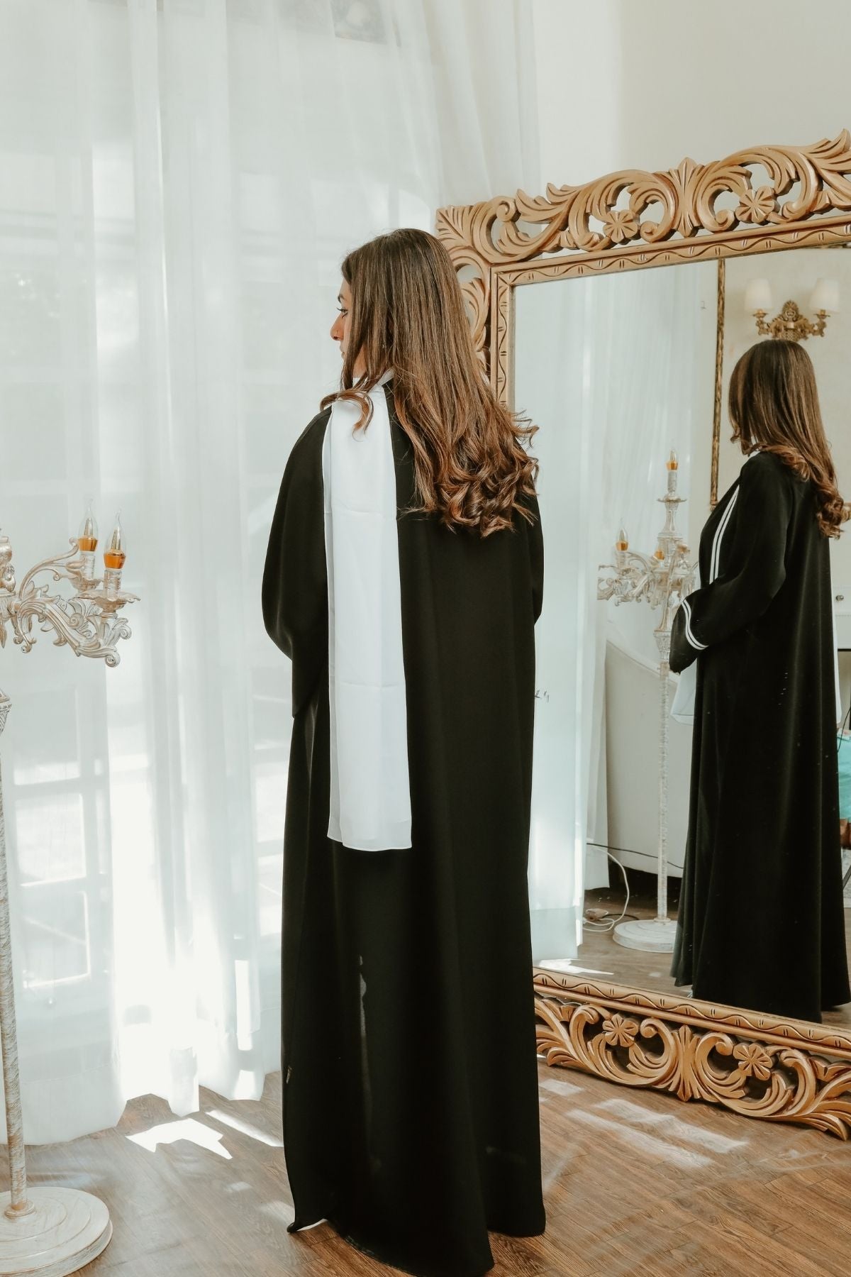 - Record a short video showing the abaya on you and email it to tarhaabayas@gmail.com.