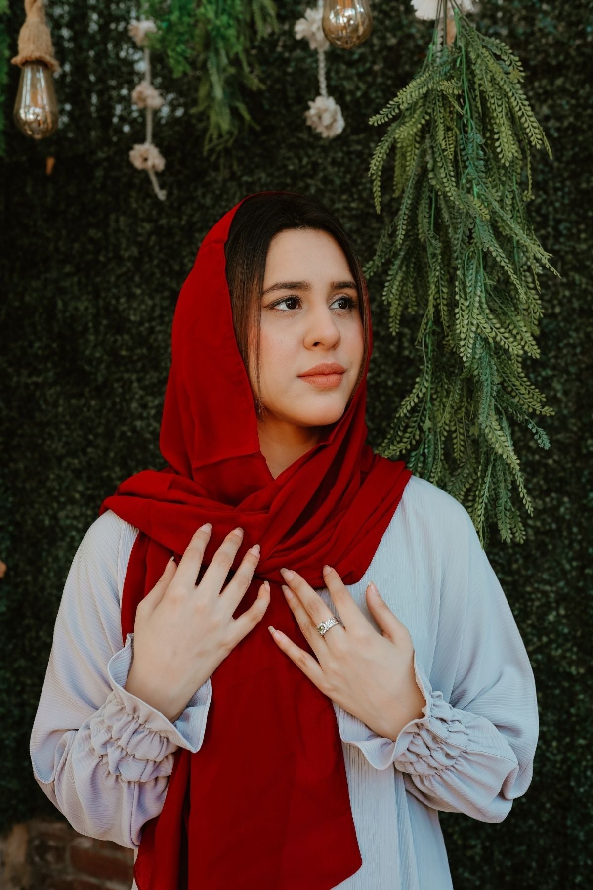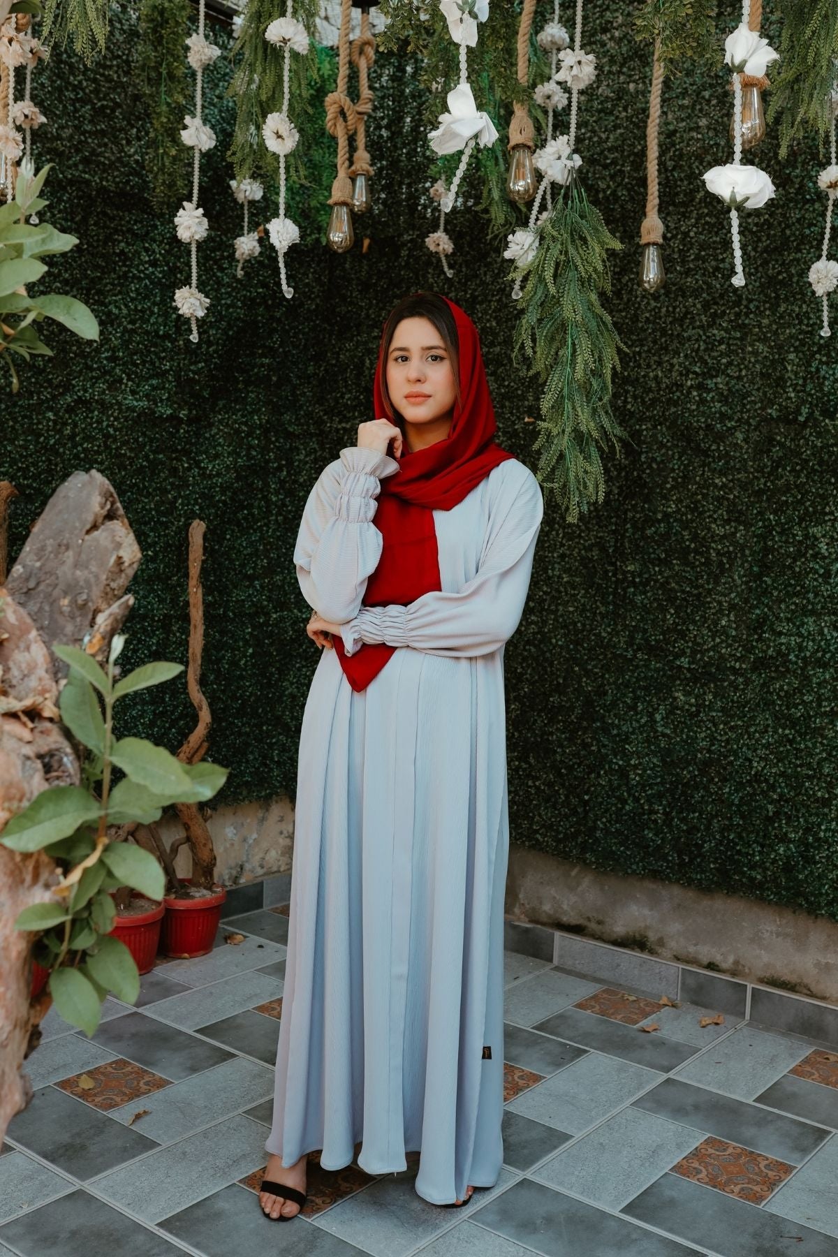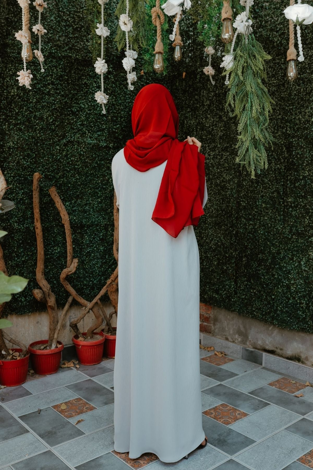 - Record a short video showing the abaya on you and email it to tarhaabayas@gmail.com.