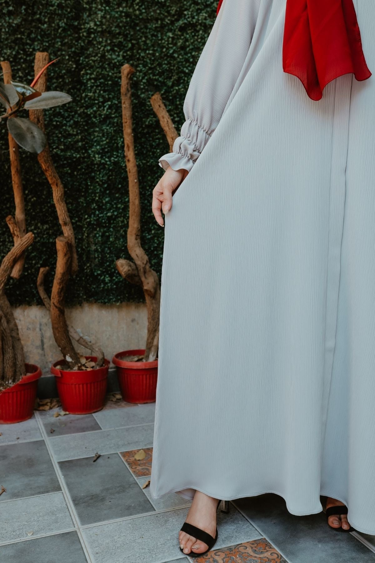 But Tarha uses the same fabric used in premium Saudi, Emirati, and Qatari abayas.